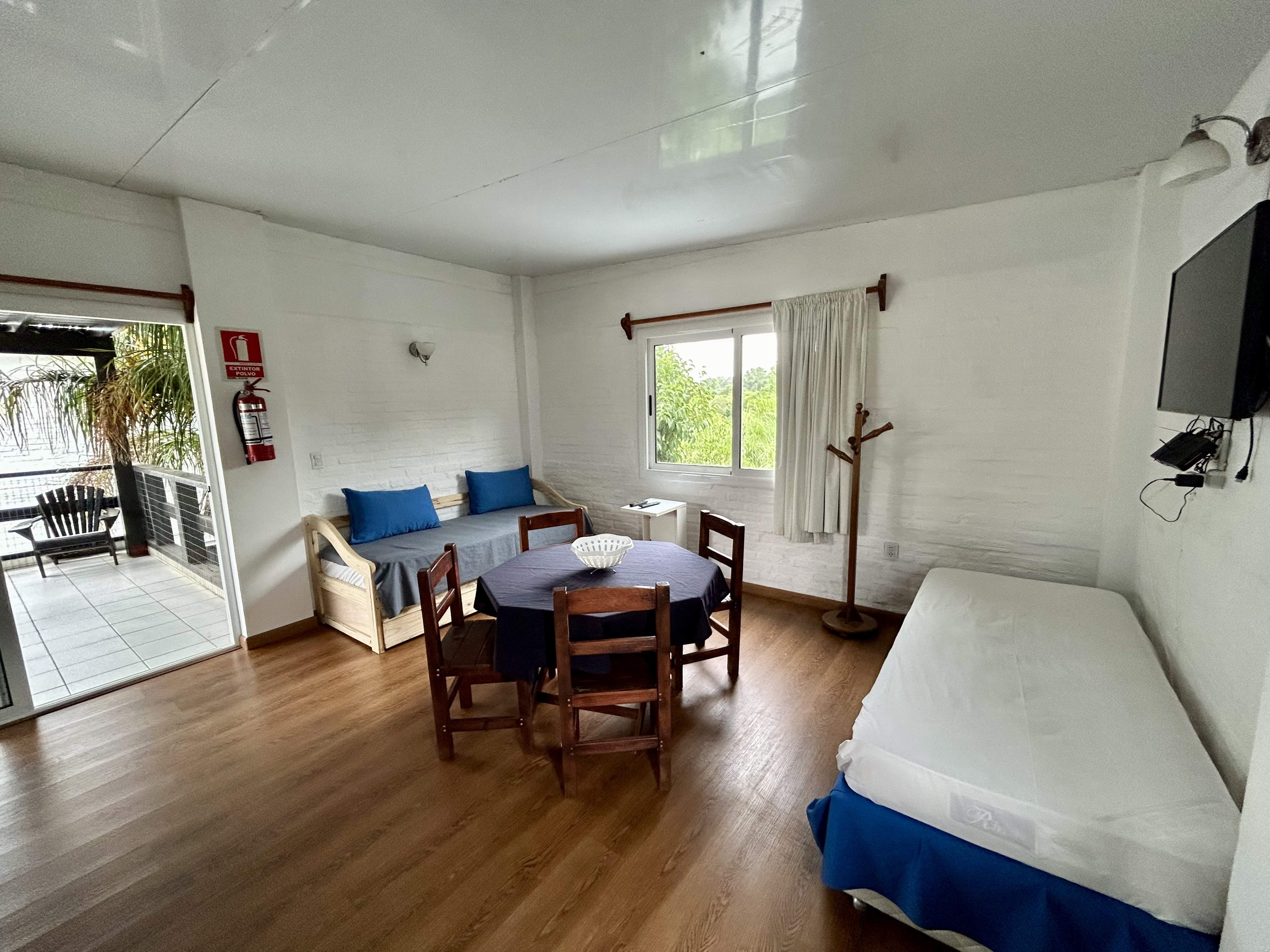 Apartamentos para 5 personas: un dormitorio con cama matrimonial, baño, living comedor con cama marinera, sofá cama y cocina